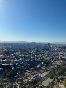 東山スカイタワーと、その展望室からの名古屋の風景